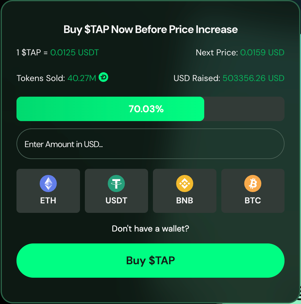 Over 40 million $TAP tokens (more than 70% of the Round 1 supply) have been grabbed by early bidders. And analysts are calling for 2,000% gains once major exchange listings for $TAP go live by the end of this year.