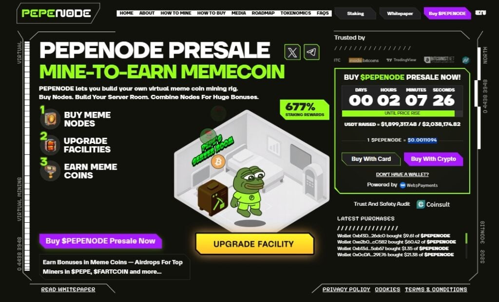 Pepenode is emerging as one of the most creative crypto presales of 2025, blending the viral energy of meme culture with a sustainable, gamified mining concept. The project introduces a “mine-to-earn” system where users can use $PEPENODE to purchase virtual miners that generate APY in real time.