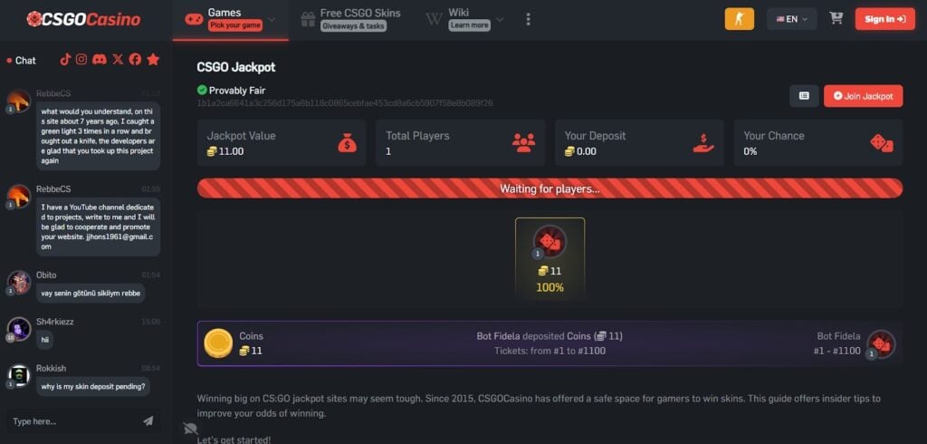 The CSGO skins jackpot implementation itself is fine, it’s just surrounded by enough other features that the whole experience feels less dialed-in than platforms built specifically around pot mechanics.