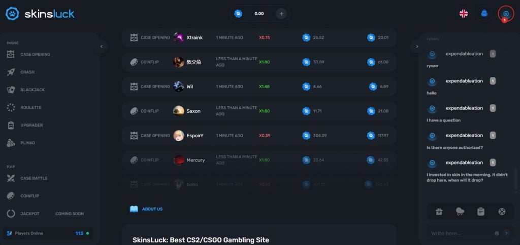 When we’re picking the best CSGO jackpot site, it comes down to nailing the basics without the usual frustrations that plague this format. SkinsLuck does exactly that – runs stable pots, processes withdrawals, doesn’t randomly lock your account. Nothing groundbreaking, just functional where it counts when you’re actually putting skins on the line.