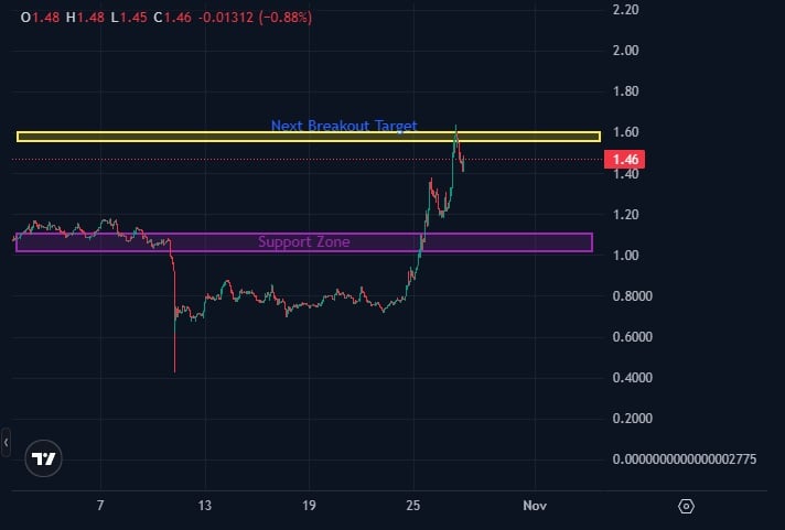If buyers maintain control, the next breakout targets lie between $1.55 and $1.60, contingent on broader market sentiment and continued growth in the platform’s fee metrics.