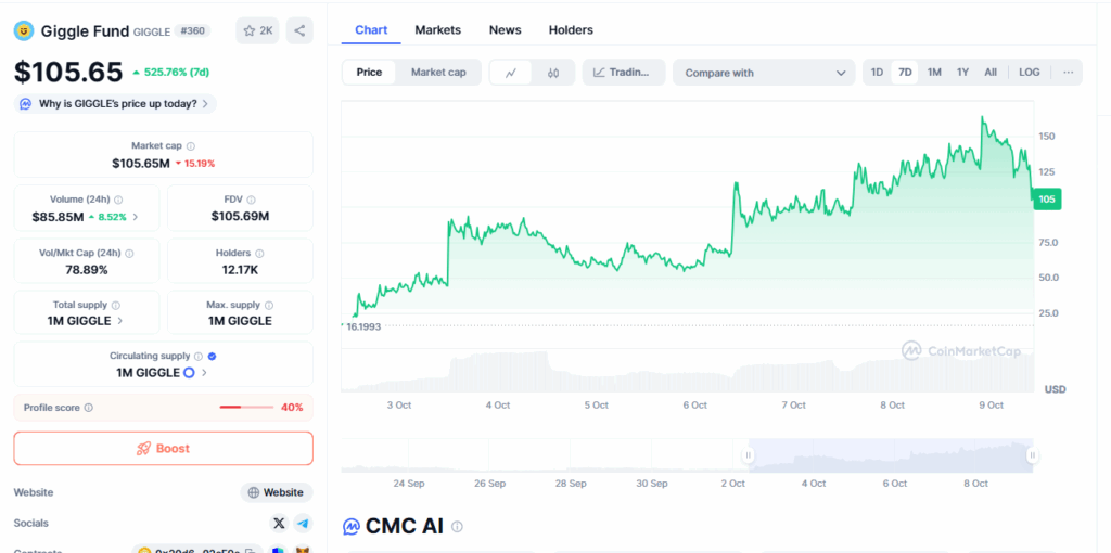 GIGGLE was up 704.71 percent in the last seven days, trading at $132.88 per token. Early shareholders who bought at lower prices have reaped significant returns. While the token’s recent rise signals intense interest in meme assets, its long-term stability remains tied to market volatility.