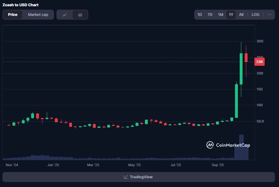 Even so, ZEC coins remain popular, and have actually seen a massive price boost in the last month. The Zcash price went from $55 on September 28 to $292 on October 12, and while it dipped to $200 after the resistance at $300 rejected its price, the project is already halfway to reaching it again.