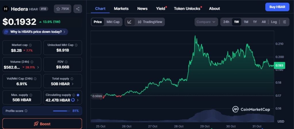 This projection underscores growing investor confidence in Hedera’s long-term utility and network strength. Overall, the coin remains one of the leading large-cap projects and one of the best altcoins to buy now.