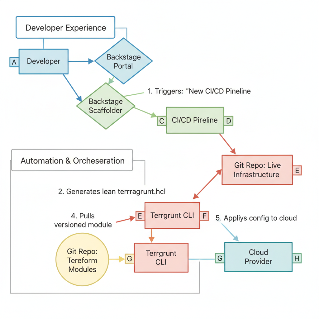 Regardless of whether requests come from a homegrown Backstage instance, a managed IDP, or even a CI/CD job, Terragrunt is the key to solving the WET problem and ensuring long-term maintainability.
