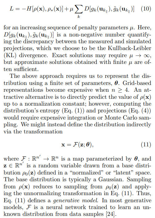 Roussel et al. [10] showed that generative models can also be trained to match projections of the unknown distribution. To train the model via gradient descent, the transformations from the base distribution to the measurement locations must be differentiable: