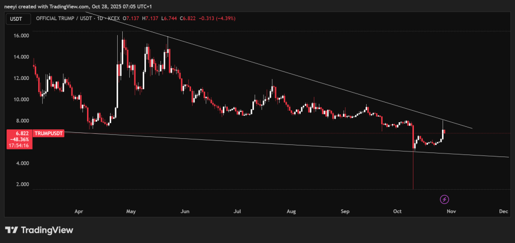 The official TRUMP token went from $6 to $8 (+25.5%) on October 27