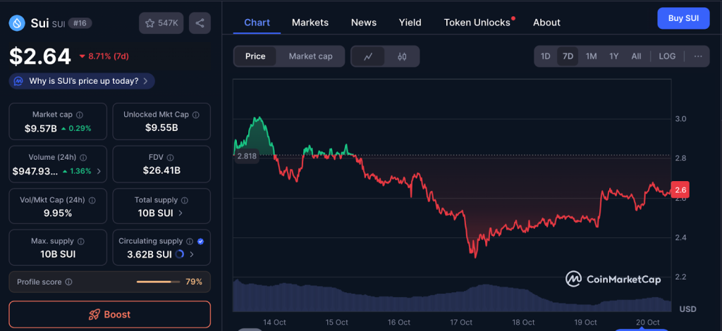 This cycle, however, the tone is changing, with people gravitating towards proven functionality. Sui’s 9% weekly drop down to the $2.64 level reflects this change.