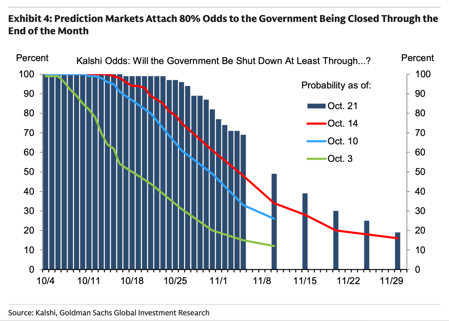 One interesting aspect of this is that the ongoing U.S. government shutdown will likely prevent Bureau of Labor Statistics from collecting the October data on employment and inflation, according to Ronnie Walker and his colleagues at Goldman Sachs.