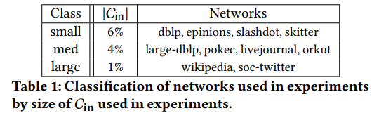 Datasets. The experiments have been carried out on a series of datasets of varying sizes, as detailed in Table 2. The datasets have been taken either from the SNAP large networks database [36] or the KONECT project [34]. We organize the results into two broad sections: we first introduce two variants